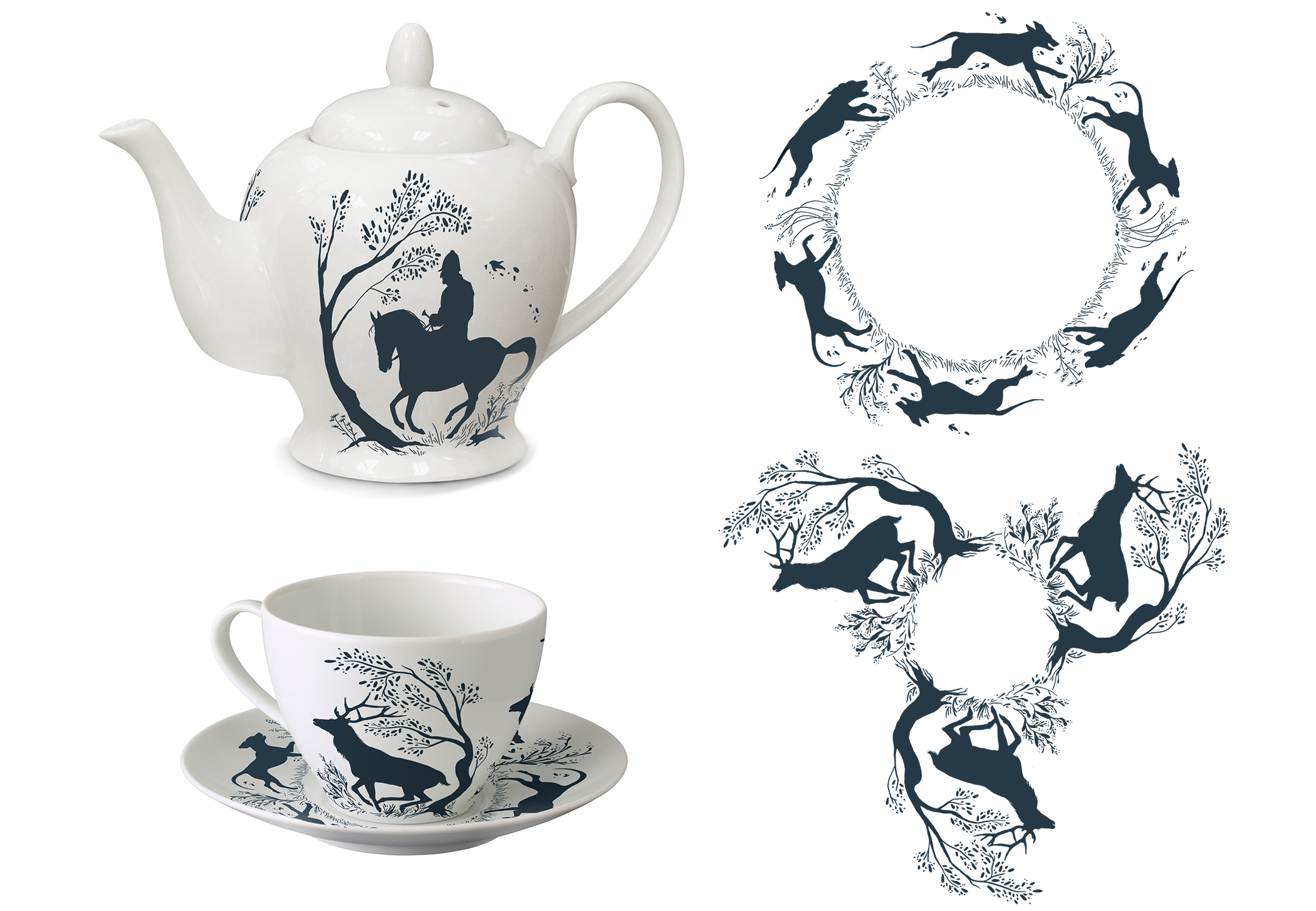 Tea set as allegory of feeling hunted and overwhelmed by forces such as a crippling anxiety you cannot overcome. Best served with a red herbal tea.